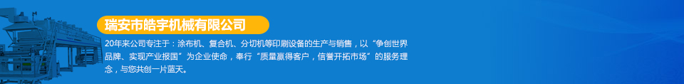 瑞安市皓宇機械有限公司是瑞安一家私營責任有限公司,注冊資金200萬,員工40余人,是具有獨立法人地位,專業生產定做各種非標準涂布機、復合機、印刷機、分切機、壓膜機等機械設備的制造廠。公司的機器主要用于生產保護膜、膠帶、雙面膠、不干膠、相紙、油畫布、汽車防爆膜、熱轉印、燙金膜、離型膜、離型紙、軟包裝印刷、軟包裝復合、軟包裝分切等各種產品...  [詳細]
